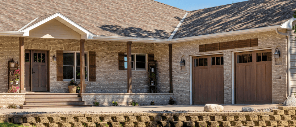 When it comes to choosing your entry door system, there are a variety of options that you have! If you choose DURA-EEZ™ garage doors, you can pair them with one of our entry door designs that are also available in DURA-EEZ™ to have perfectly matched material. However, that’s certainly not the only way that people pair their entry doors with DURA-EEZ™ garage doors! As you can see below, this homeowner wanted the convenience of low maintenance garage doors, but still wanted to have the timeless elegance of a true wood entry door. At Great Northern Door, we can match wood entry doors to the DURA-EEZ™ composite material to give you the best of both worlds!